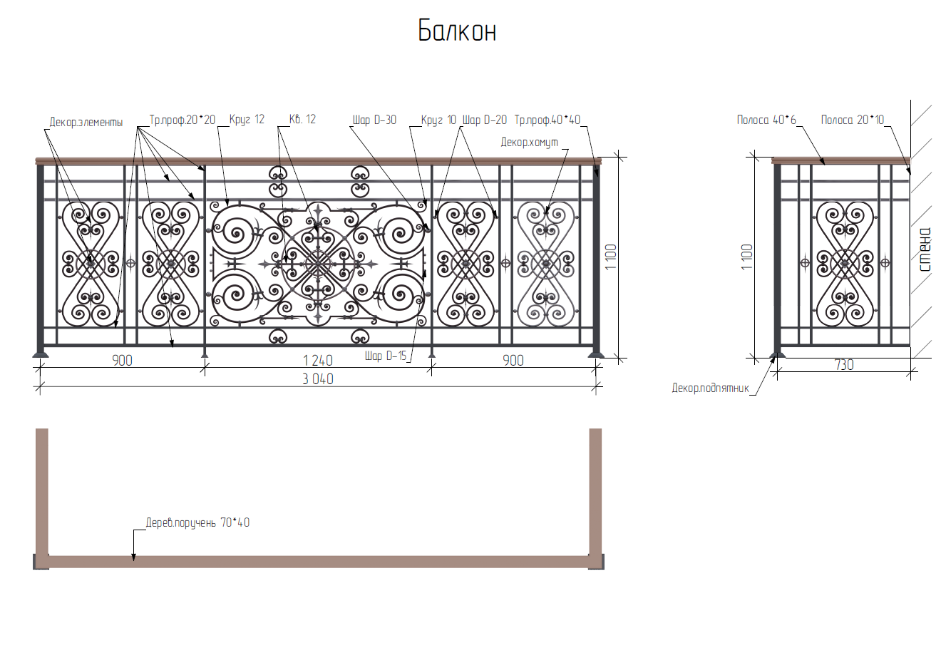- Многослойный орнамент: В секциях использован металл различного сечения. Это позволило создать сложный, «многоуровневый» рисунок, который сохраняет жесткость конструкции при высокой декоративности.